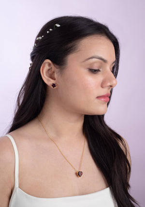 Unleash your love with our Endless Love Pendant. This signature pendant and earring set features a heart-shaped gem, radiating pure love. Exclusive to our collection, it's perfect for showing off your affection.